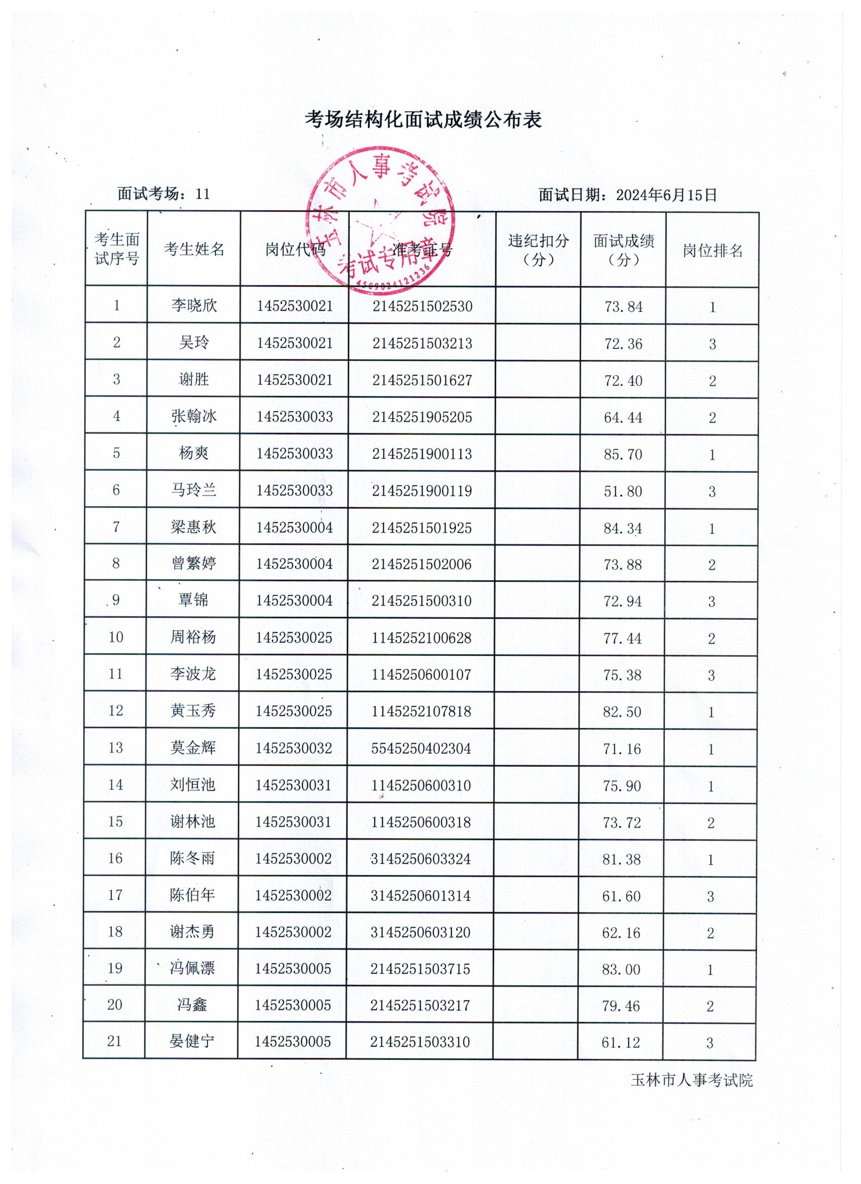 原文標(biāo)題:2024年玉林市直(含玉州區(qū)、福綿區(qū)、玉東新區(qū))事業(yè)單位公開招聘人員面試成績(jī)公布(6月15日)
