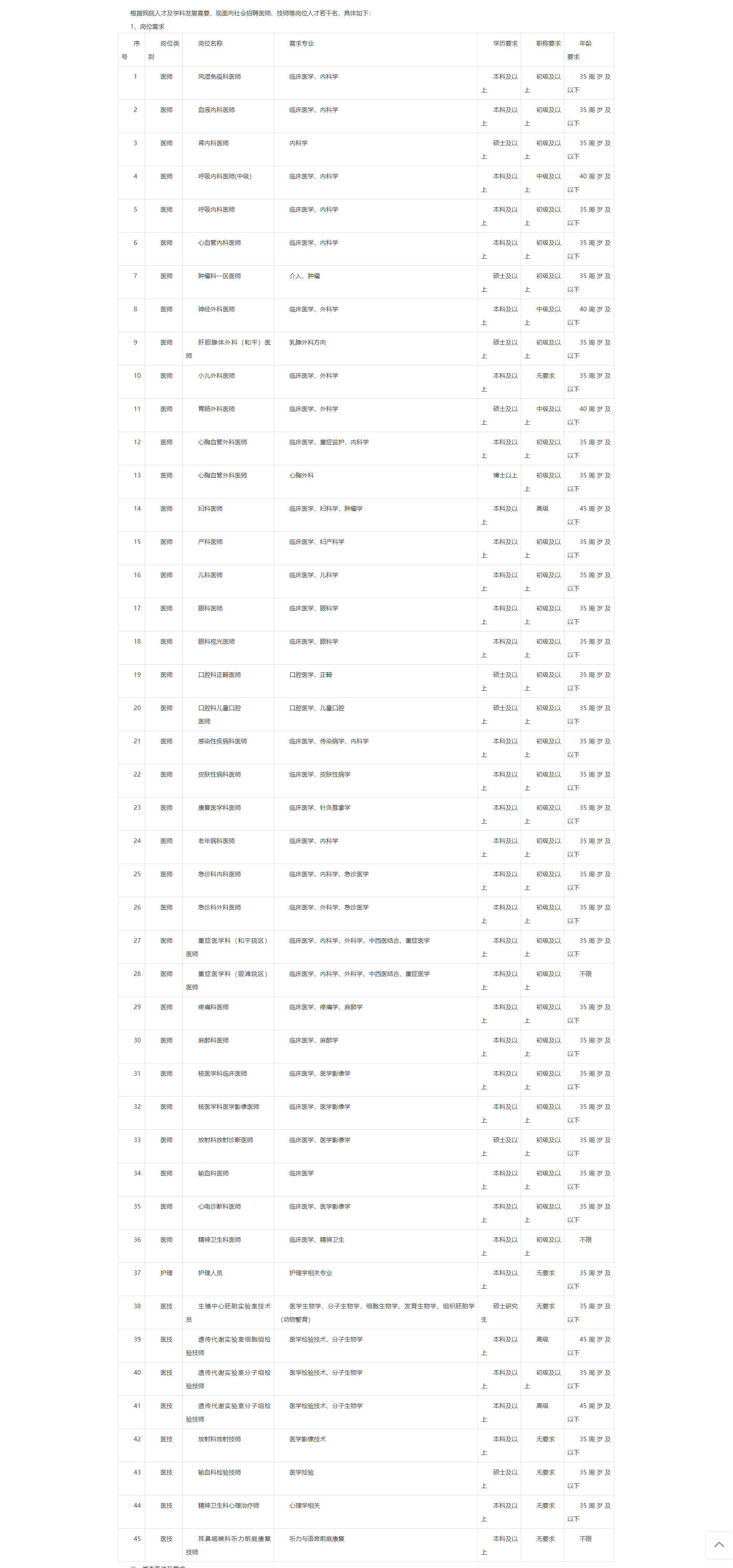 根據(jù)我院人才及學(xué)科發(fā)展需要,現(xiàn)面向社會(huì)招聘醫(yī)師、技師等崗位人才若干名,具體如下: