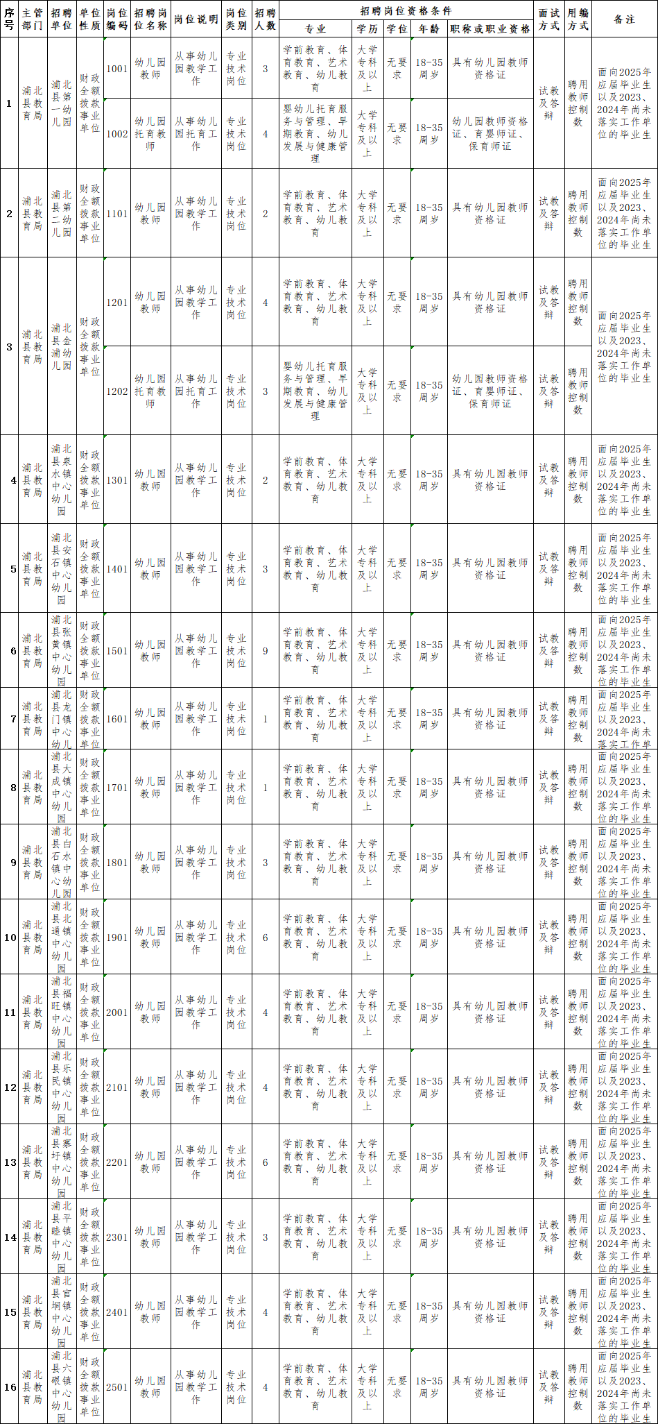 5.幼兒園崗位需大專及以上學(xué)歷,中職、高中、初中、小學(xué)崗位需本科及以上學(xué)歷,取得相應(yīng)的教師資格證書和普通話等級(jí)證書;2023、2024年畢業(yè)的高校畢業(yè)生在報(bào)名時(shí)必須提供相應(yīng)的學(xué)歷證書、教師資格證書。2025年畢業(yè)的普通高校應(yīng)屆考生在報(bào)名時(shí)未能獲得學(xué)歷證書、教師資格證書的,也可報(bào)名參加考試,但必須在上崗政審考核前提供學(xué)歷證書、教師資格證書原件,否則取消聘用資格。2023、2024年尚未落實(shí)工作單位的普通高校畢業(yè)生是指國家統(tǒng)一招生的普通高校畢業(yè)離校時(shí)和在國家規(guī)定的擇業(yè)期內(nèi)未落實(shí)工作單位,戶口、檔案、組織關(guān)系仍保留在原畢業(yè)學(xué)校或保留在各級(jí)畢業(yè)生就業(yè)主管部門(畢業(yè)生就業(yè)指導(dǎo)服務(wù)中心),各級(jí)人才交流服務(wù)機(jī)構(gòu)和各級(jí)公共就業(yè)服務(wù)機(jī)構(gòu)的畢業(yè)生。