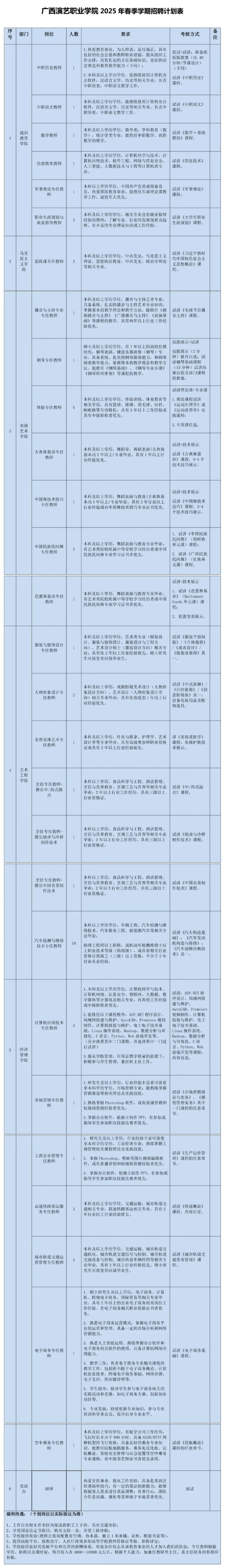 見廣西演藝職業(yè)學(xué)院2025年春季學(xué)期招聘計(jì)劃表(也可上廣西人才網(wǎng)了解具體信息)。