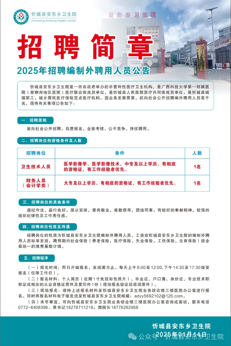 2025年來賓忻城縣安東鄉(xiāng)衛(wèi)生院招聘2人簡(jiǎn)章