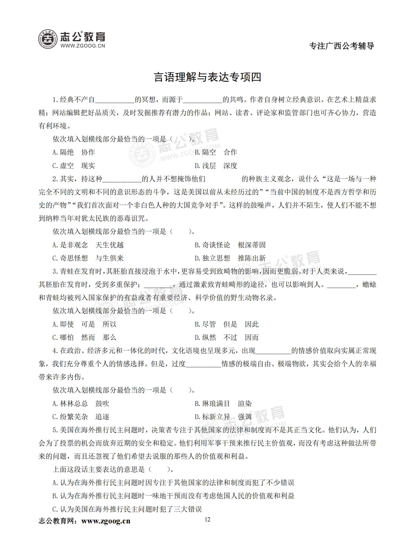 【公考模塊練習】言語理解題四(試題)