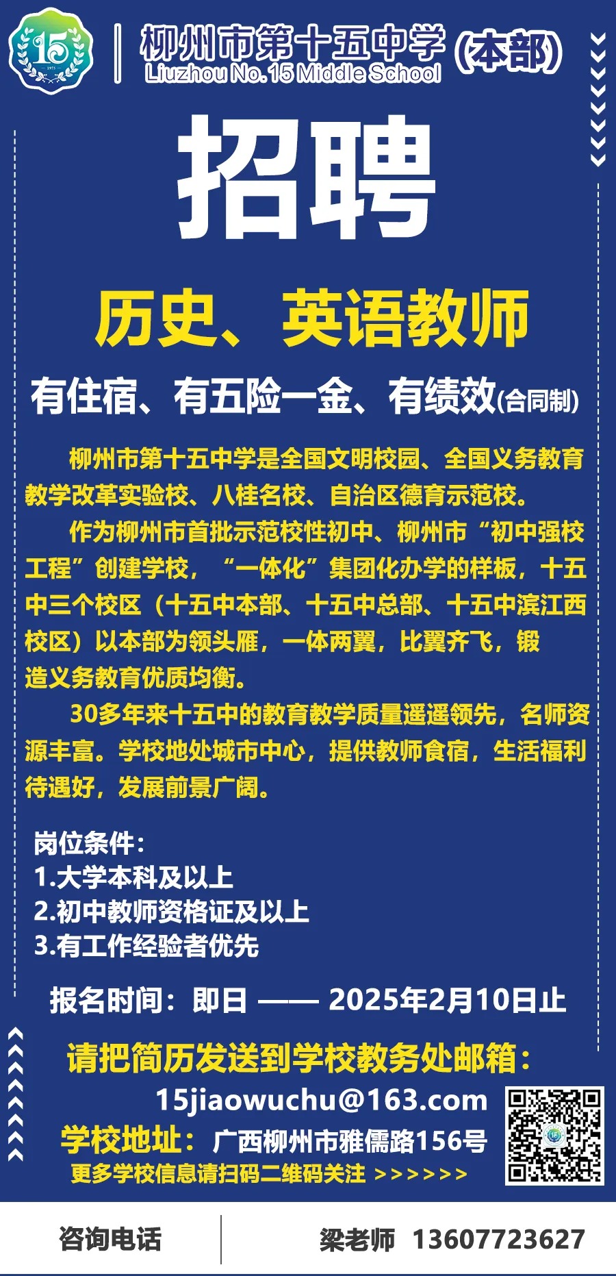 2025年柳州市第十五中學(xué)本部誠聘英才