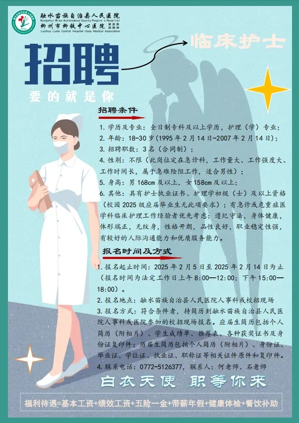 原文標(biāo)題:2025年柳州融水苗族自治縣人民醫(yī)院招聘臨床護(hù)士3名