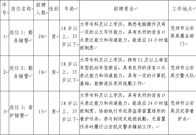 為適應(yīng)憑祥市公安機(jī)關(guān)管理工作發(fā)展需要,憑祥市公安局決定面向社會(huì)公開招聘40名警務(wù)輔助人員(以下簡稱輔警)。具體事宜如下: