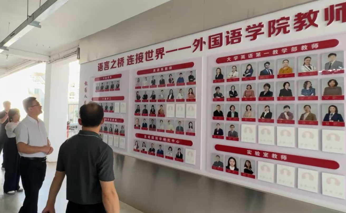 (▲李輝書記帶領參觀團隊了解學院的相關情況)