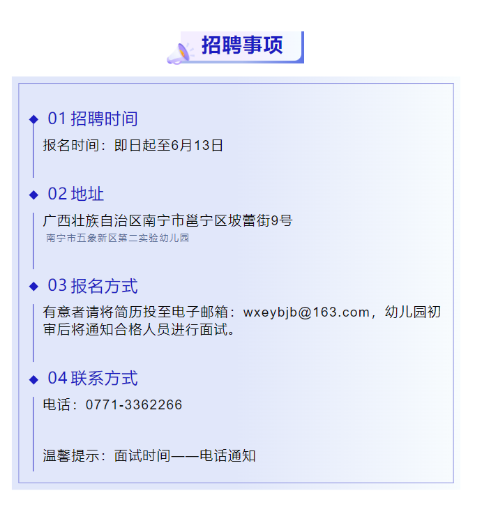 原文標題:南寧市五象新區(qū)第二實驗幼兒園招聘公告