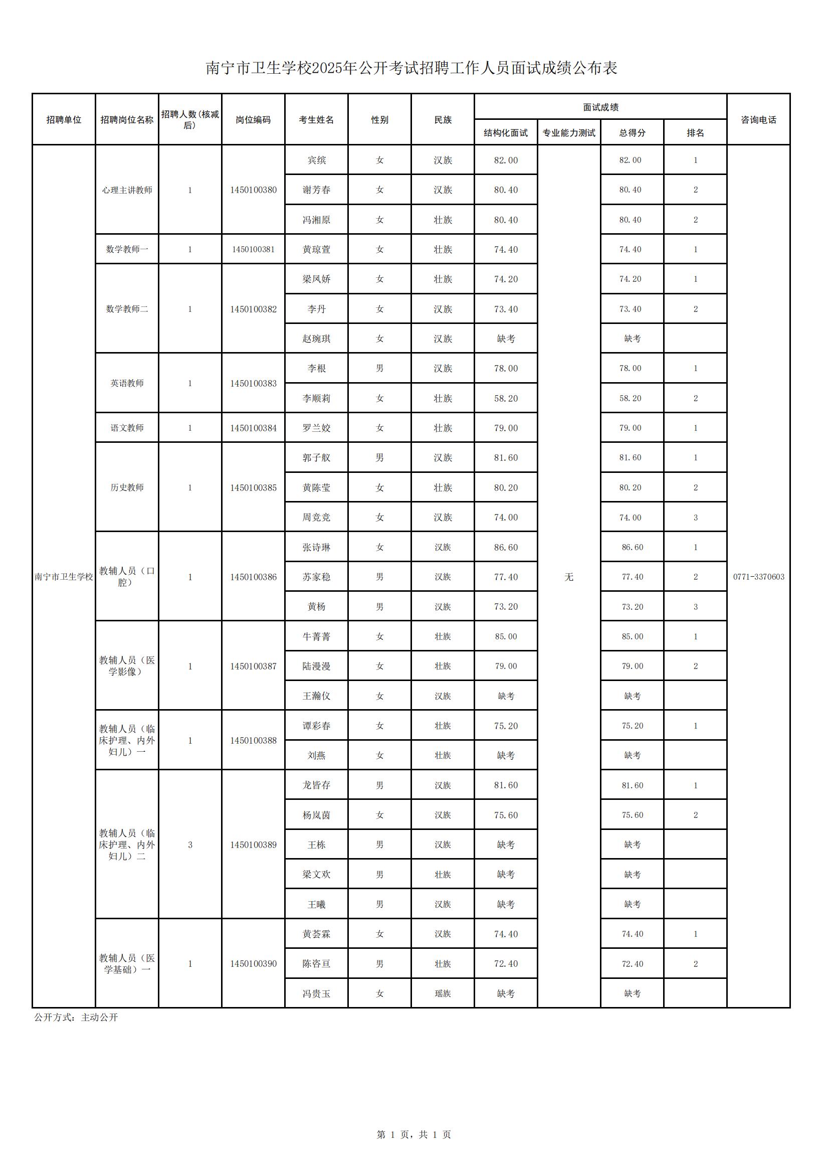 原文標(biāo)題:南寧市衛(wèi)生學(xué)校2025年公開考試招聘工作人員面試成績公布表