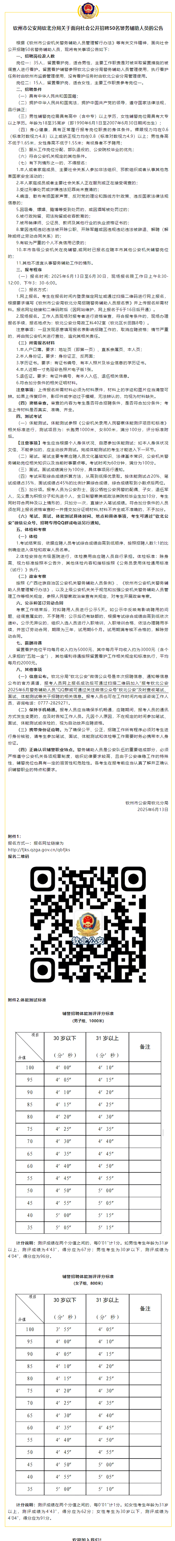 欽州市公安局欽北分局關(guān)于面向社會(huì)公開招聘50名警務(wù)輔助人員的公告