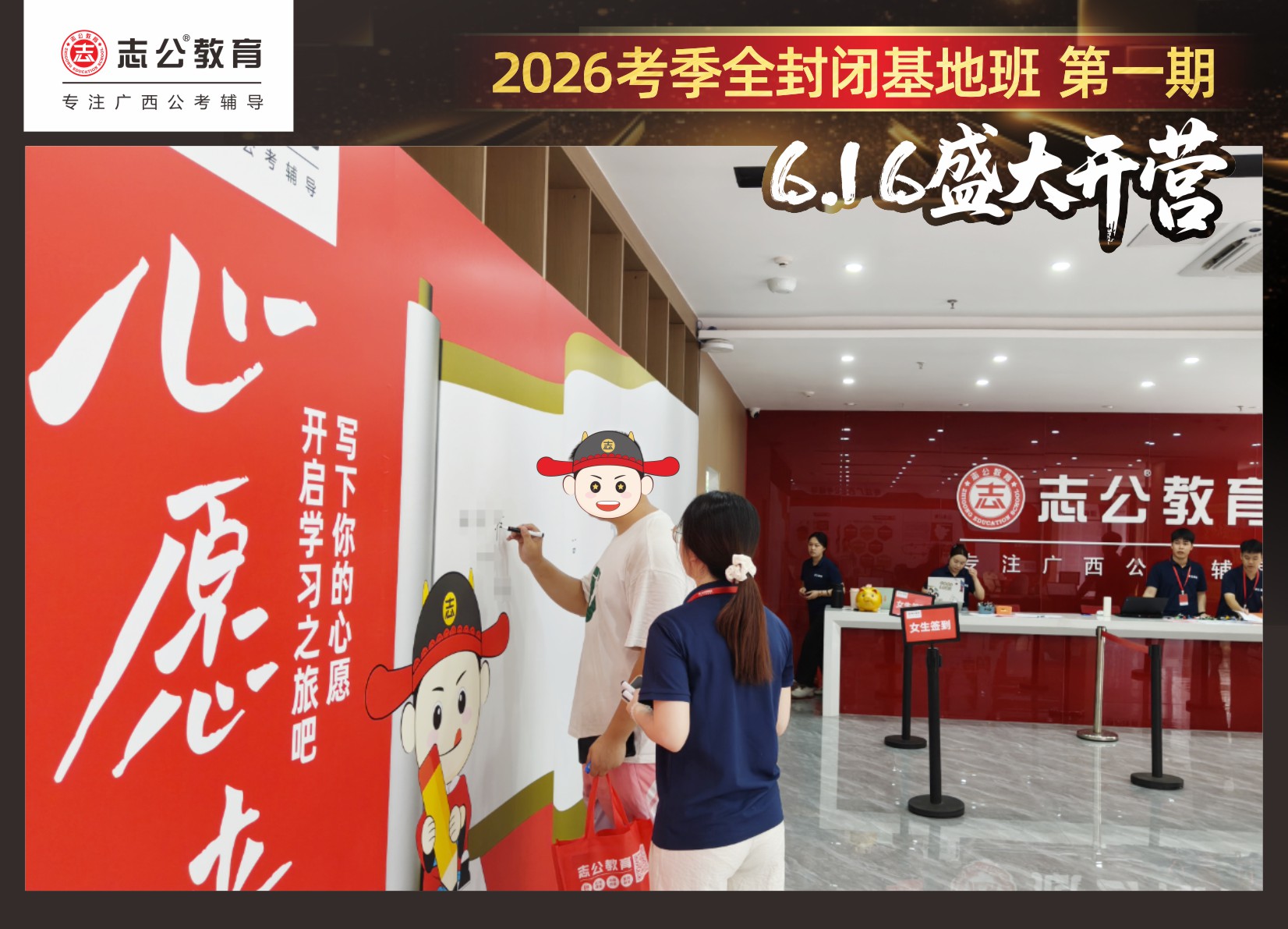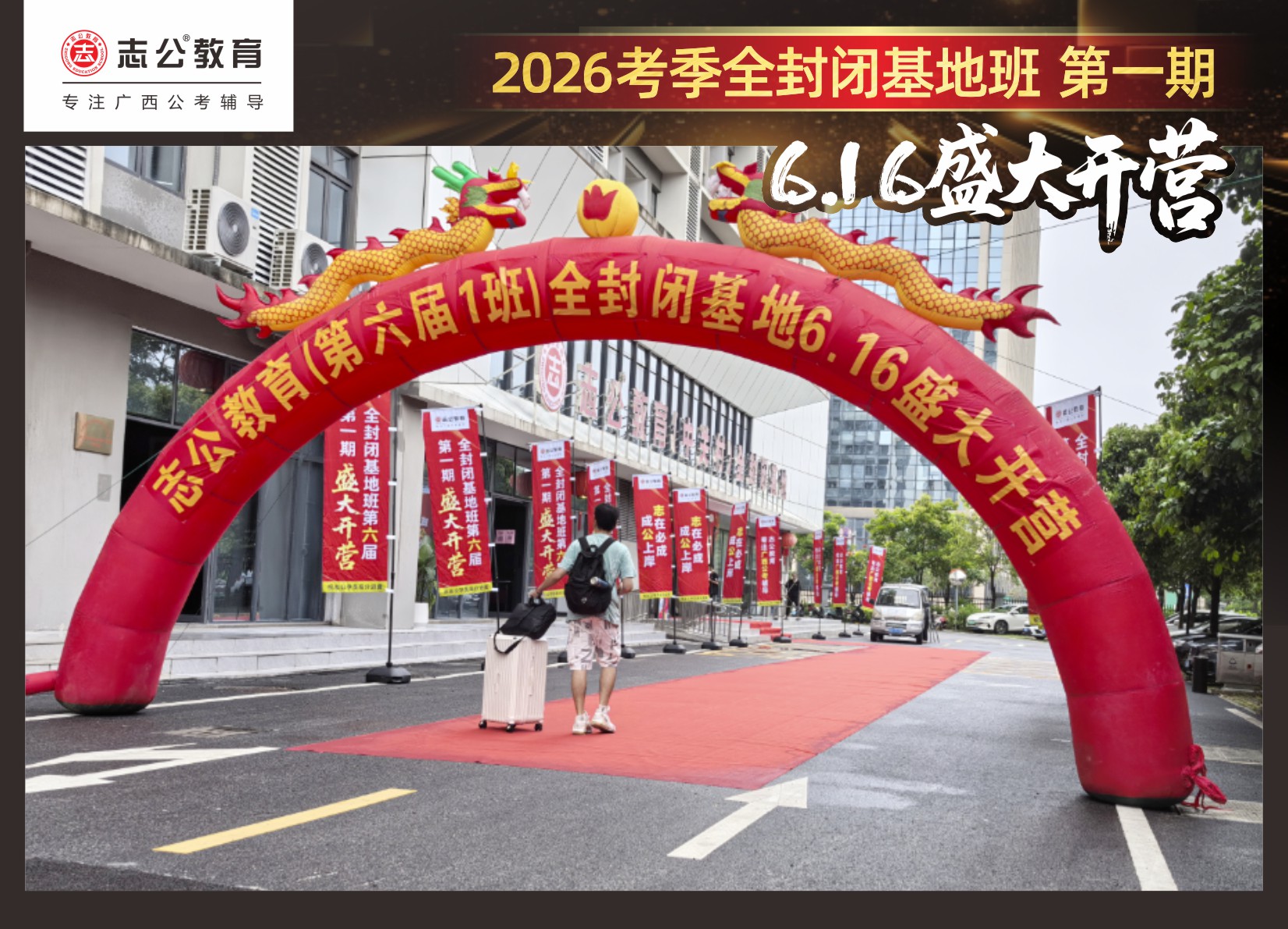 6月16日,志公教育基地班在萬(wàn)眾翹首以盼中,正式拉開帷幕!來(lái)自各地的學(xué)員們,懷揣著夢(mèng)想與憧憬匯聚于此,以“躍龍門”的非凡勇氣和“走紅毯”般的自信姿態(tài),鄭重地書寫下屬于自己的“上岸心愿”。在這場(chǎng)充滿儀式感與溫馨氛圍的啟程儀式中,開啟了新篇章。