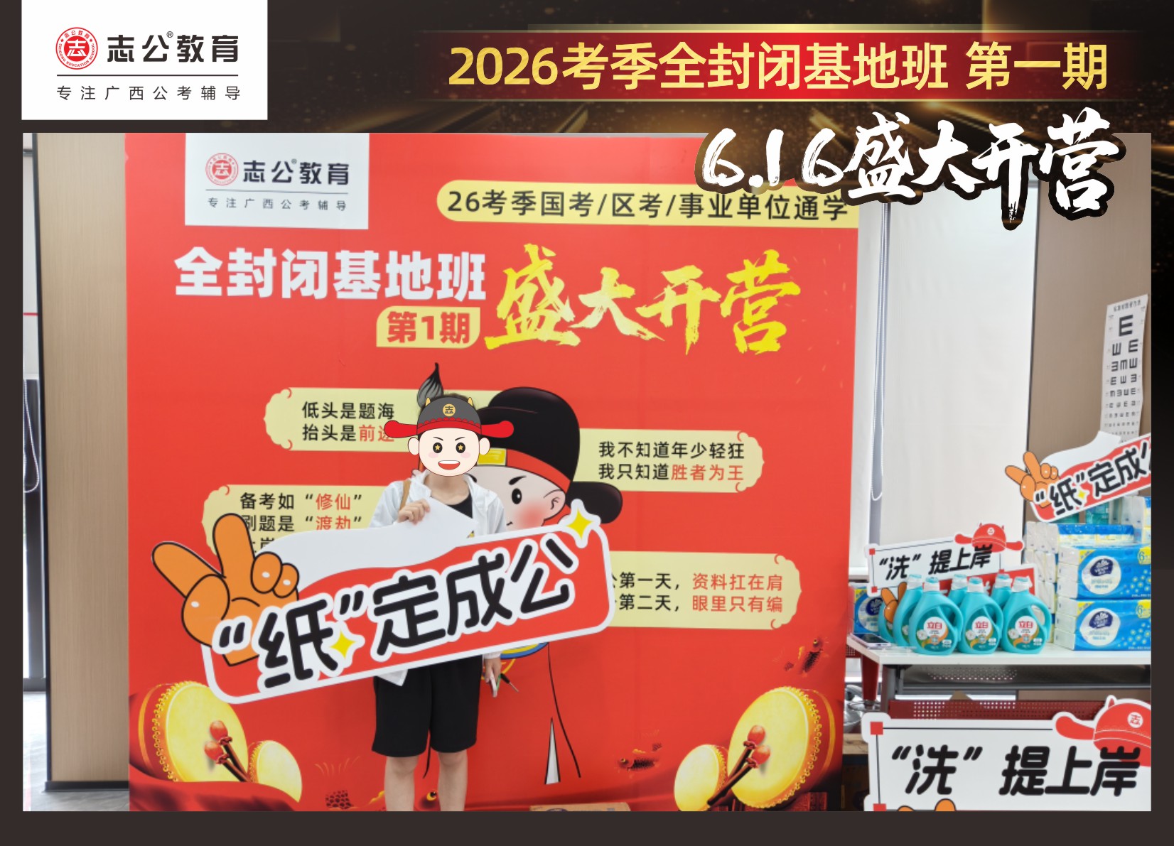 由于這段時(shí)間受臺(tái)風(fēng)影響,南寧迎來下雨天,但學(xué)員們滿懷先一步備考,快一步成功圓夢(mèng)的滿滿炙熱信心,早早就在志公教育(中關(guān)村)全封閉基地前臺(tái)等候,6月16日,志公教育26考季全封閉基地班第1期的學(xué)員們齊聚一堂,正式開啟他們的公考備戰(zhàn)之旅。簽到環(huán)節(jié)作為基地班課程的第一站,不僅是對(duì)學(xué)員們的歡迎儀式,更是他們邁向夢(mèng)想的第一步。