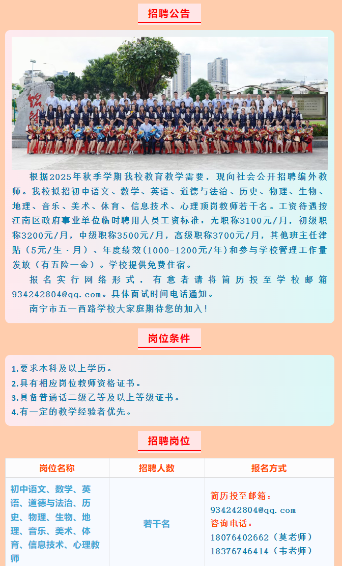 2025年南寧市五一西路學校招聘老師若干名