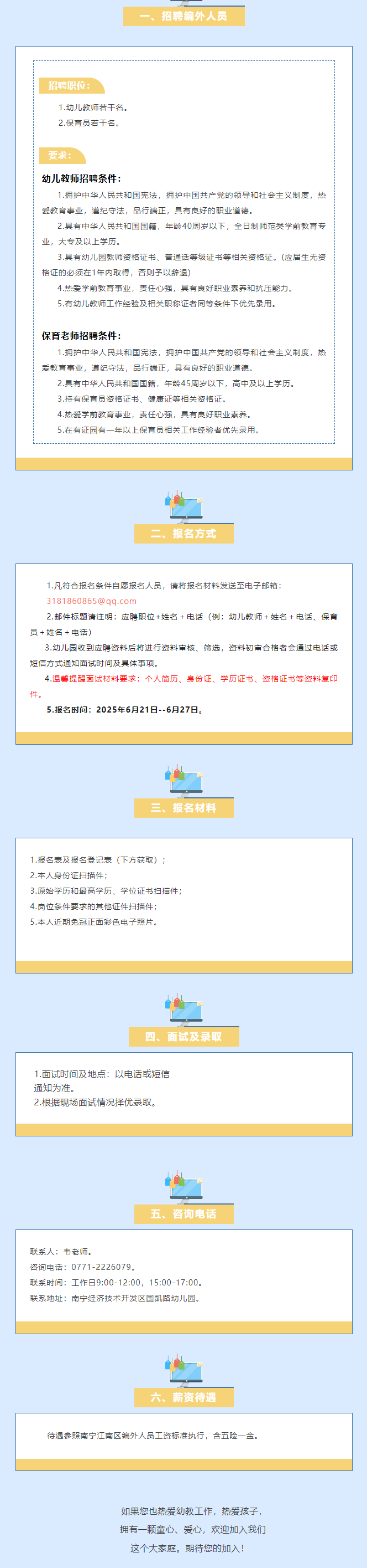 2025年南寧經(jīng)濟技術開發(fā)區(qū)國凱路幼兒園招聘編外人員若干人