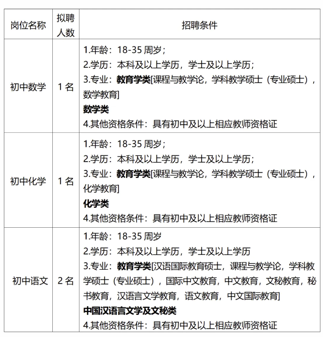 (六)18周歲以上、35周歲以下。有教學(xué)經(jīng)驗豐富、碩士研究生或中級職稱以上的應(yīng)聘人員,年齡可適當(dāng)放寬到45周歲。