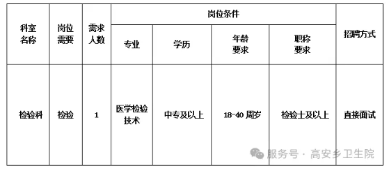 來賓市興賓區(qū)高安鄉(xiāng)衛(wèi)生院是一家集醫(yī)療、預(yù)防保健、康復(fù)醫(yī)療于一體的國家公立基層醫(yī)療機(jī)構(gòu),現(xiàn)有職工45人,服務(wù)人口約2萬人。因工作需要,我院擬向社會公開招聘編制限額外檢驗科人員1名,現(xiàn)將有關(guān)招聘事項公告如下: