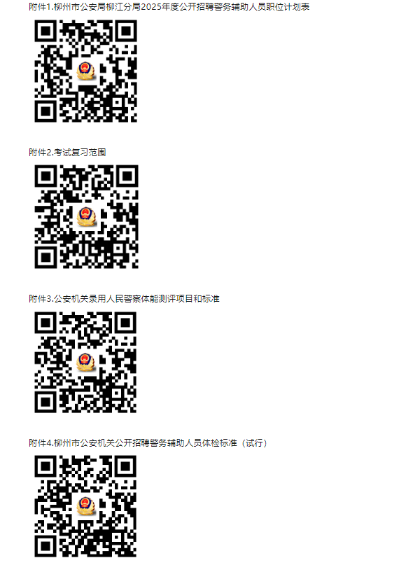 體檢依據(jù)《柳州市公安機(jī)關(guān)公開(kāi)招聘警務(wù)輔助人員體檢標(biāo)準(zhǔn)(試行)》執(zhí)行(見(jiàn)附件4)。