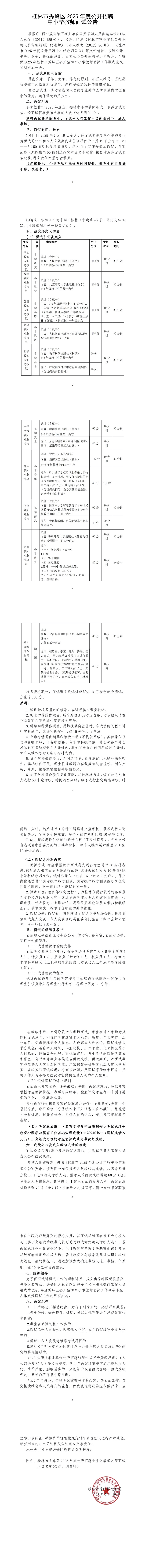 2025年桂林市秀峰區(qū)公開招聘中小學(xué)教師面試公告