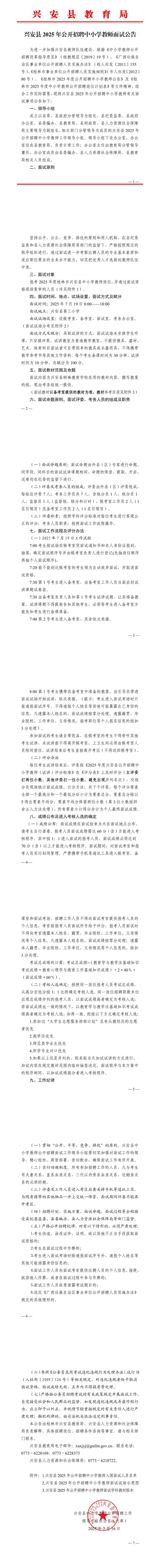 原文標(biāo)題:興安縣2025年公開招聘中小學(xué)教師面試公告