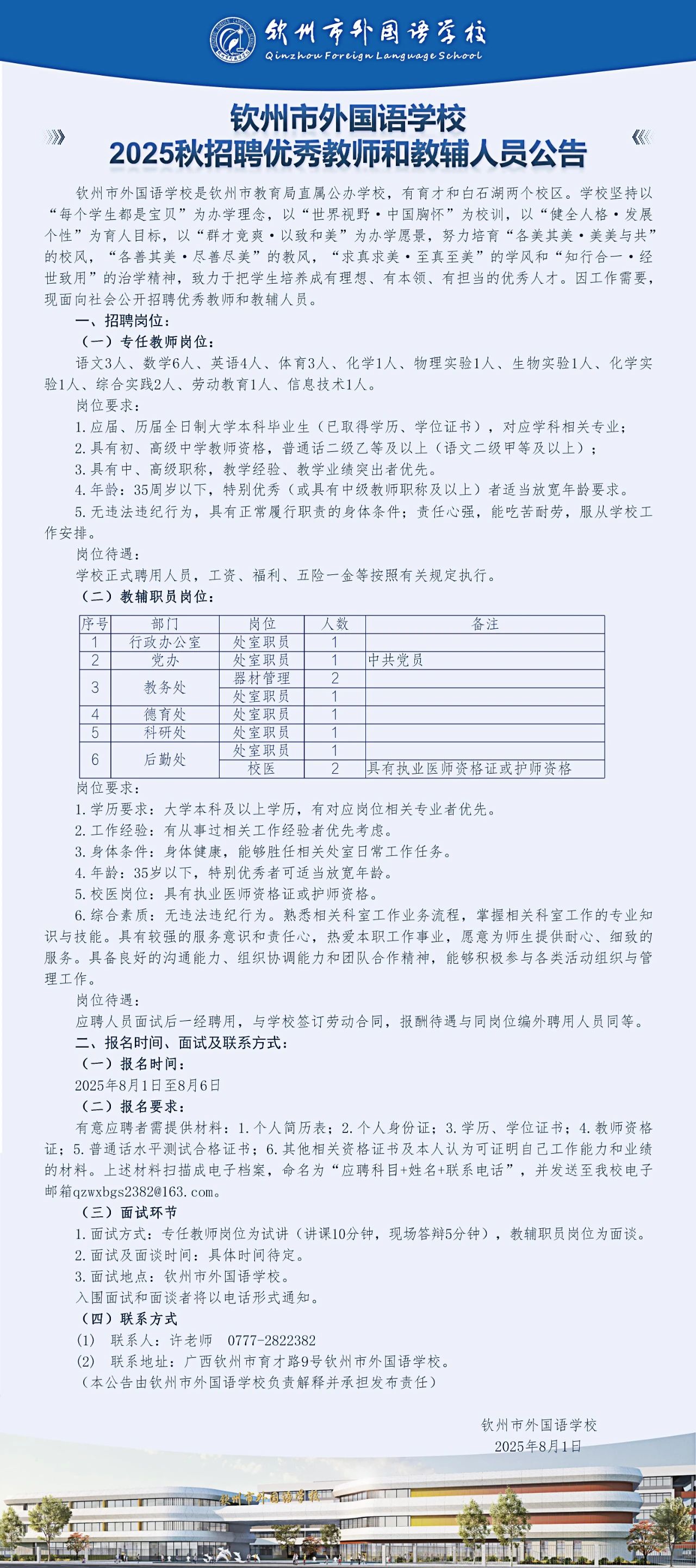 2025年欽州市外國語學(xué)校秋招聘優(yōu)秀教師和教輔人員若干人