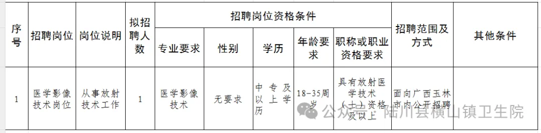 報(bào)名地點(diǎn):陸川縣橫山鎮(zhèn)衛(wèi)生院四樓院辦公室。(咨詢(xún)電話:0775-7125668)。
