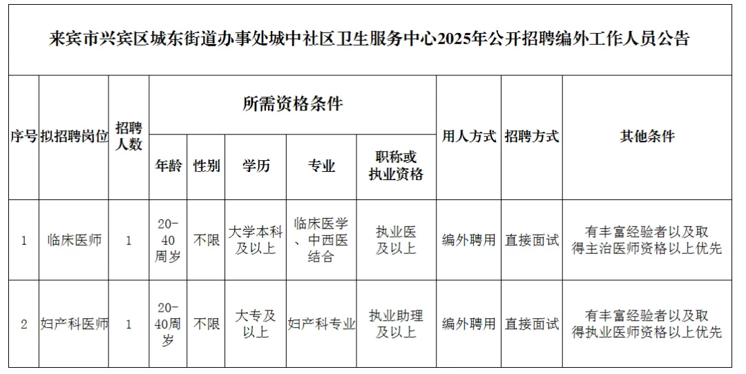 (二)報(bào)名地點(diǎn):來(lái)賓市興賓區(qū)城中社區(qū)衛(wèi)生服務(wù)中心辦公室