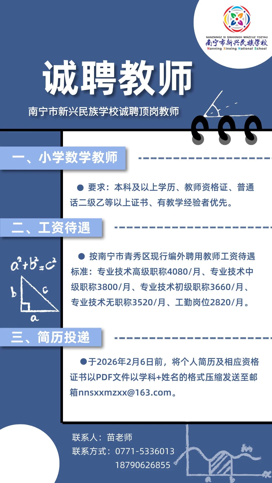 2026年南寧市新民中學誠聘教師