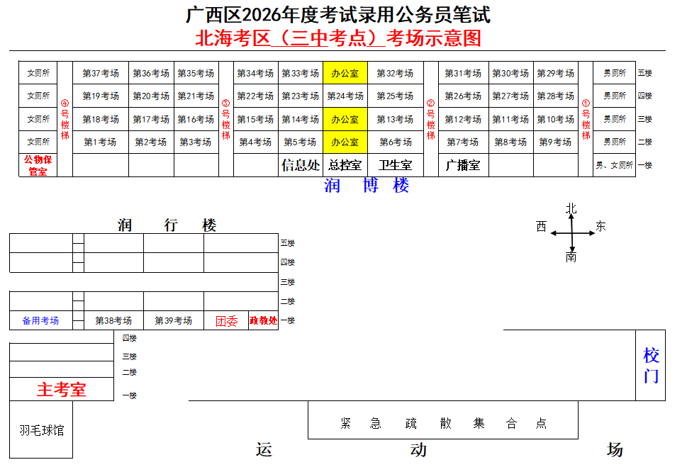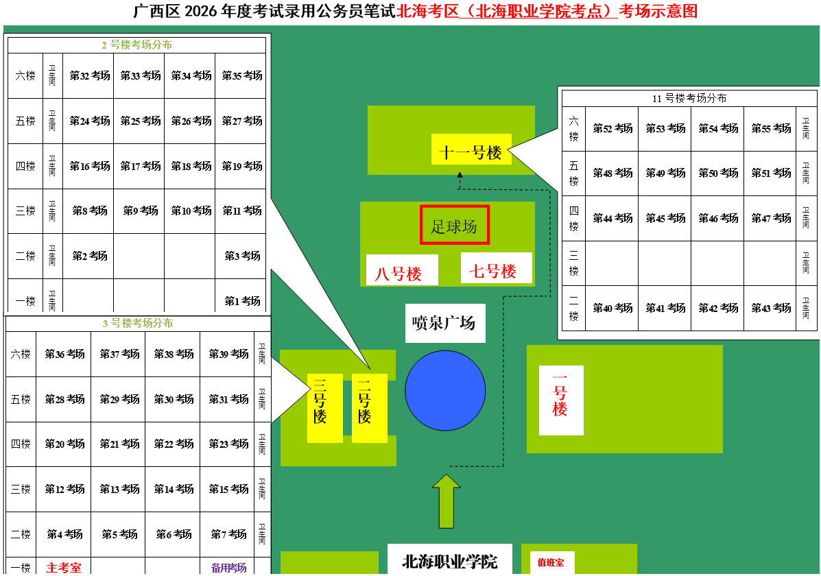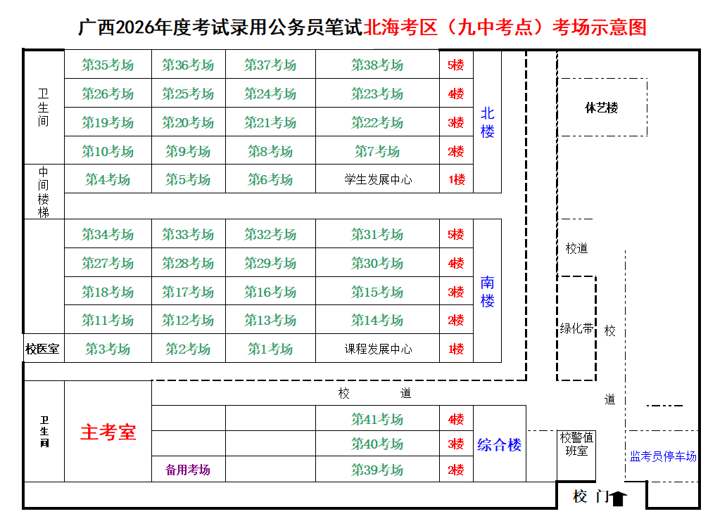 北海考區(qū)共設(shè)置6個(gè)考點(diǎn),具體考點(diǎn)考場(chǎng)布置分別如下: