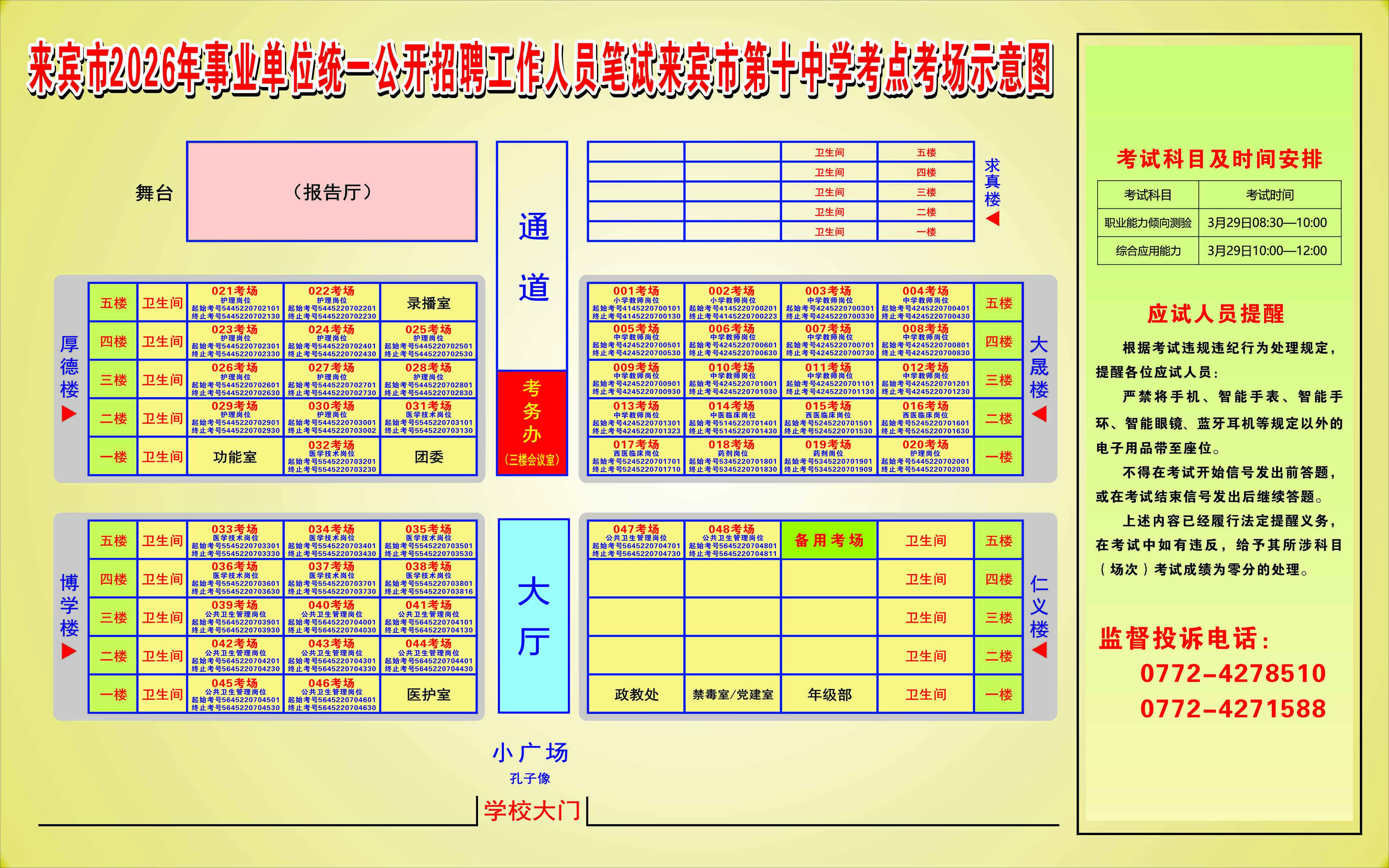 1.3月28日綜合管理類(A類),來賓職業(yè)教育中心學??键c(來賓市興賓區(qū)水韻路68號)。