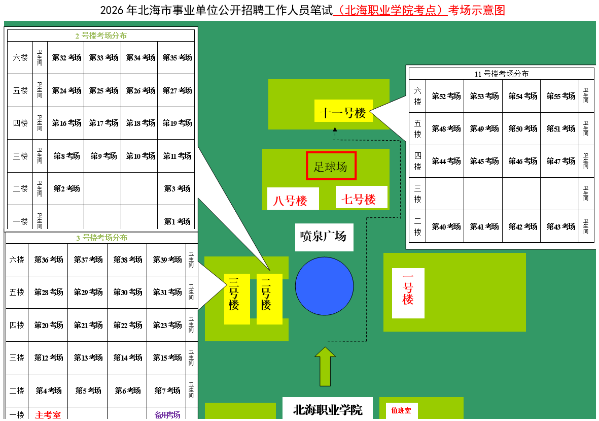 (一)3月28日進(jìn)行綜合管理類(A類)考試,北海市共設(shè)一個(gè)考點(diǎn),考點(diǎn)考場(chǎng)布置為: