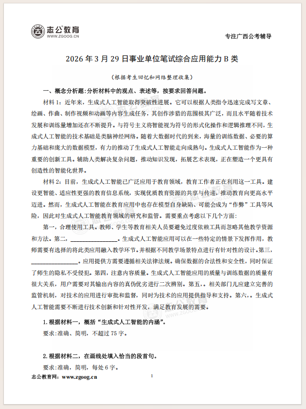 志公教育第一時(shí)間整理了考題及解析