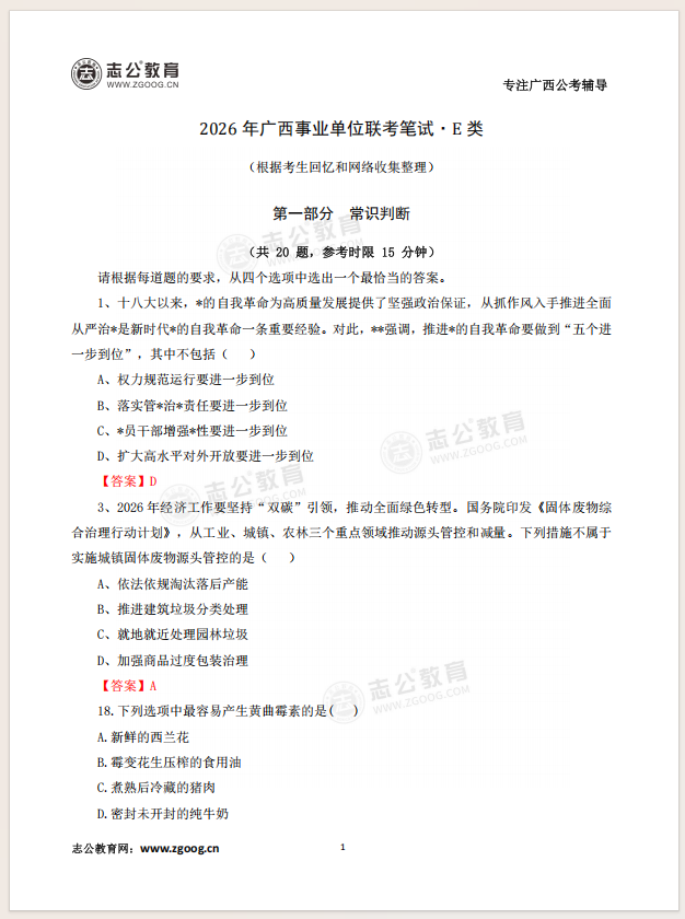 今年2026廣西事考的試題中