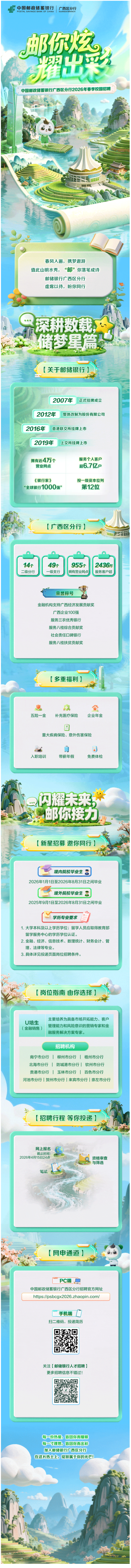 原文標題:中國郵政儲蓄銀行廣西區(qū)分行2026年春季校園招聘